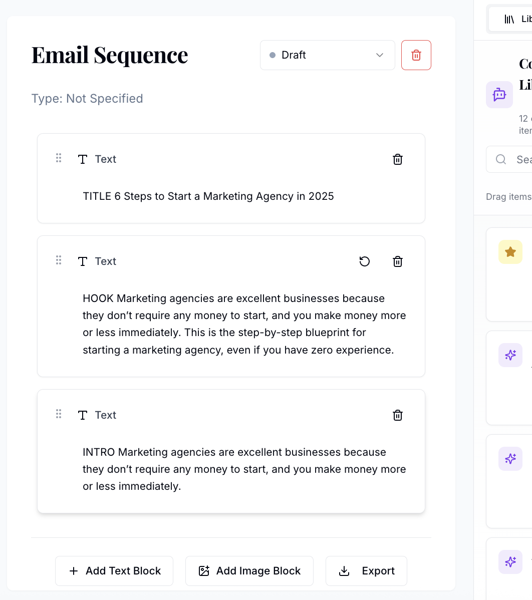 "What I love most is the drag and drop content snippets and prompts to build blogs and em_ails."