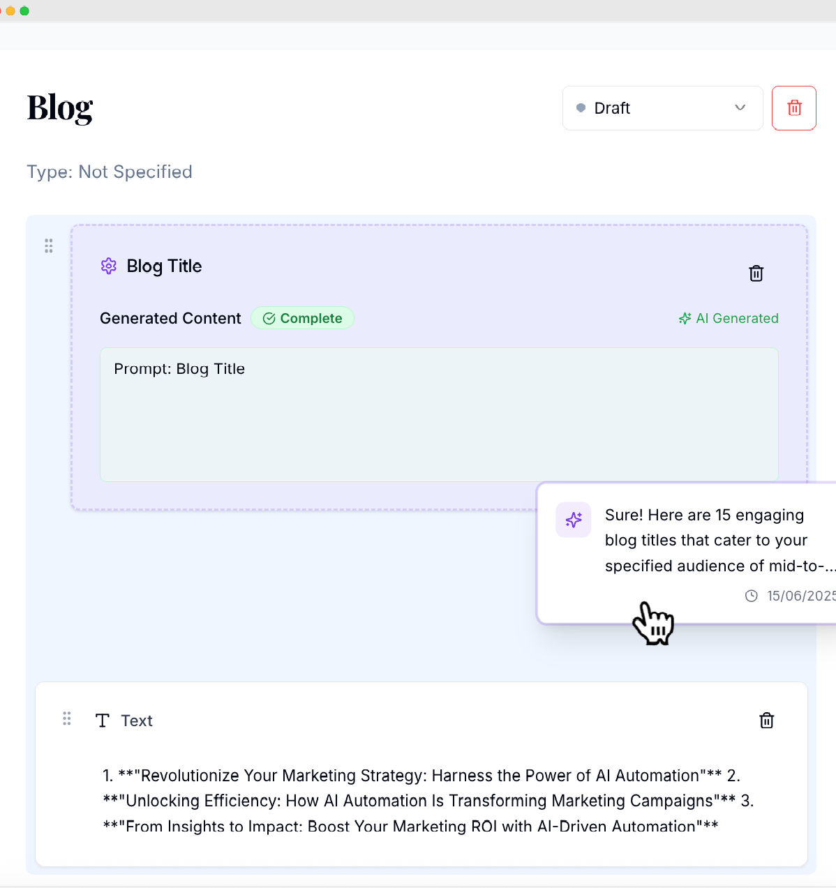 No more context-switching or prompt scavenger hunts—you stay focused on content, not on wrestling AI.
